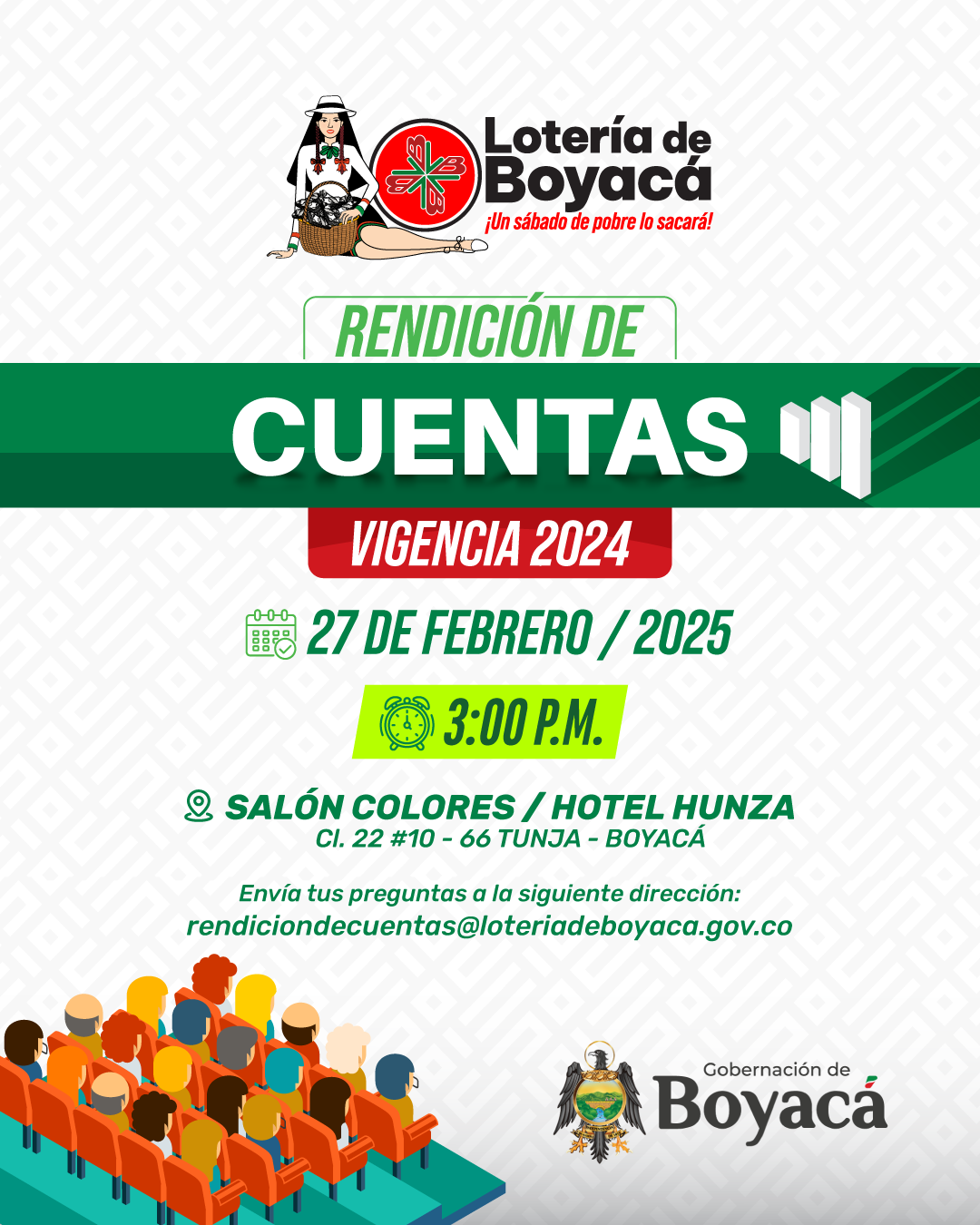 La Lotería de Boyacá es una empresa conformada por un equipo de personal altamente competente, con responsabilidad social y comprometida en: